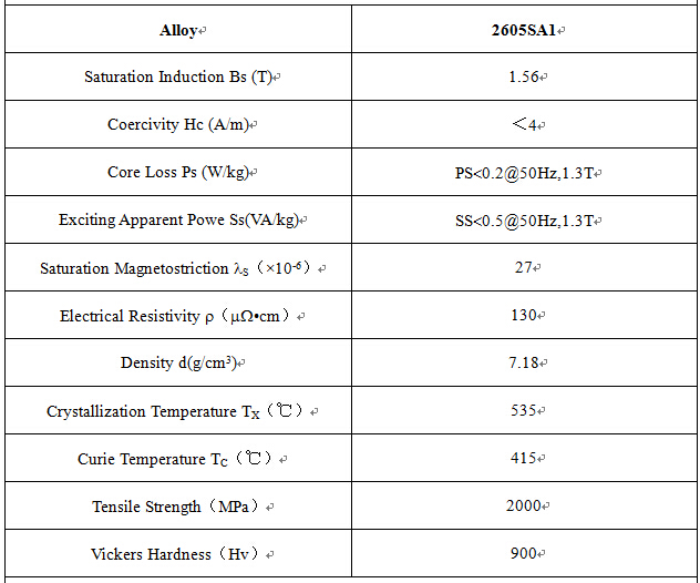 Amorphous alloy ribbon(2605SA1:mainly composed of